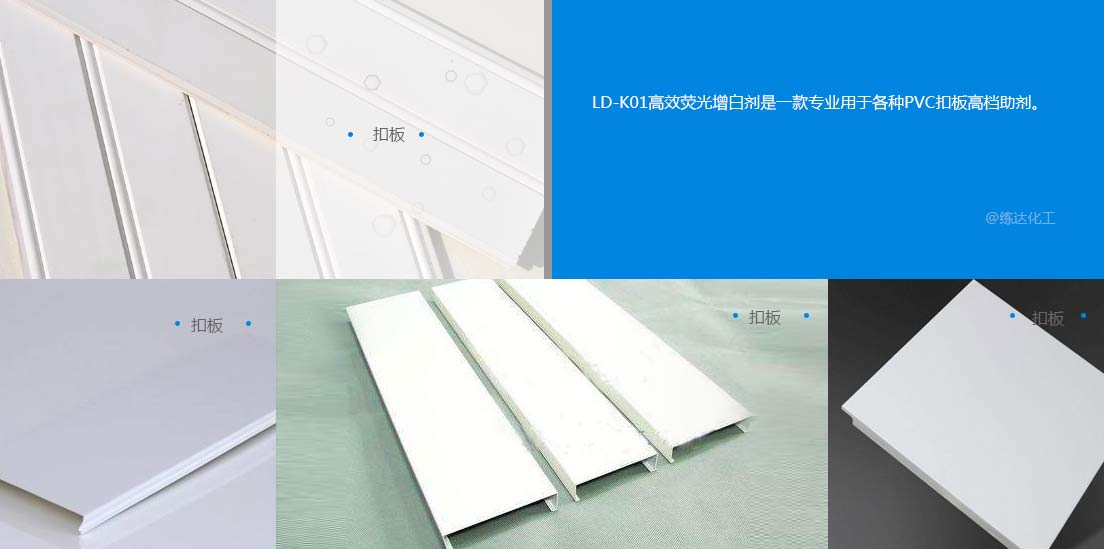 使用范圍廣LD-K01高效熒光增白劑是一款專用于各種PVC扣板高檔助劑。03
