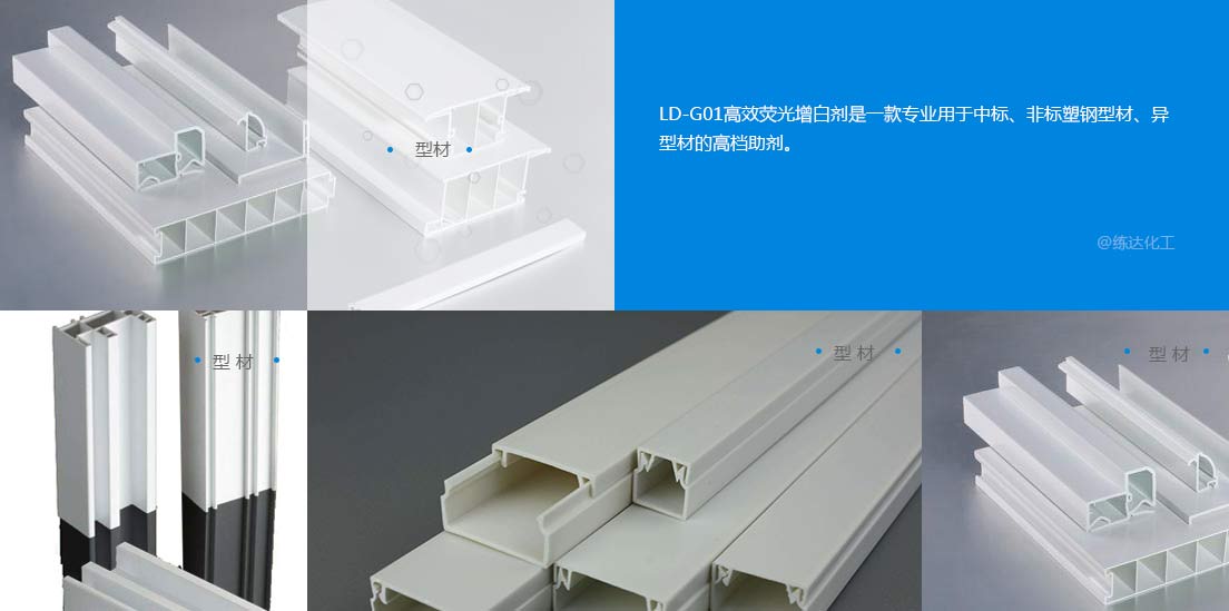 使用范圍廣LD-G01熒光增白劑是一款用于中標(biāo)、非標(biāo)塑鋼型材、異型材的高檔助劑。03
